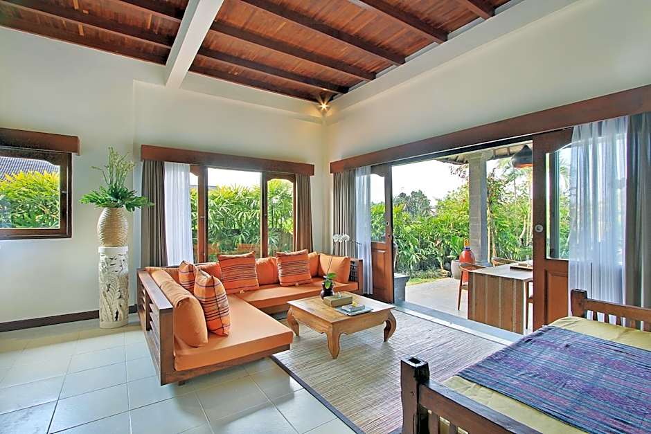 Surrounded by the lush rice fields view, this secluded two-bedroom villa features a private pool, a separate living area and a fully equipped kitchen. Guests enjoy free WiFi, a parking space and luxury villa facilities.